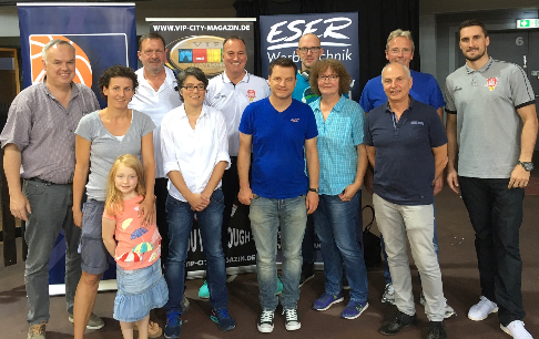 Götz Twiehoff, der leider verletzt zusehen musste, begrüßte die Anwesenden noch einmal und wünschte Allen ein gutes Gelingen der neuen Spielzeit. Das abschließende Foto zeigt gut gelaunte "Giants-League'ler", mit Abteilungsleiter Fank Rothweiler (Bildmitte, weißes Polo mit Wappen) und Götz Twiehoff (rechts).