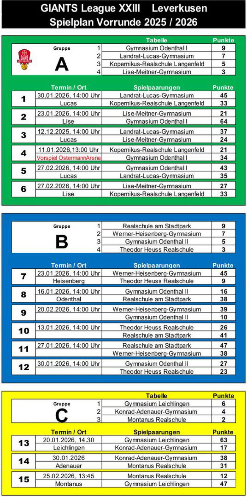 Spielplan Vorrunde